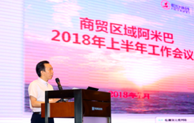 运营中心总裁许水深总结商贸上半年经营情况,并做下半年工作安排。